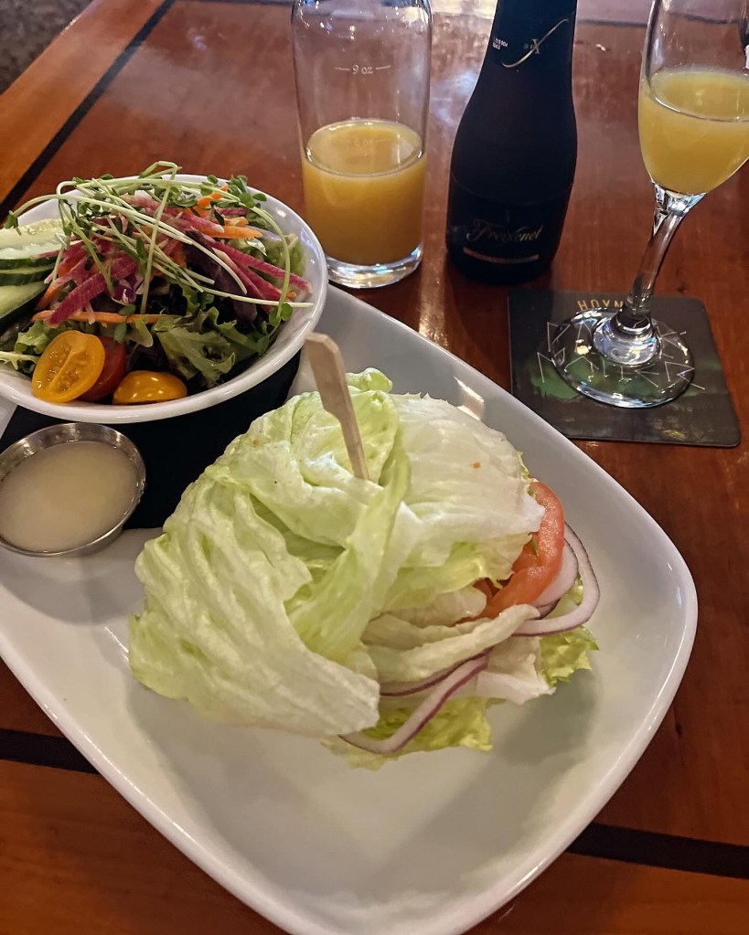 For our departing meal, we wandered over to The Sticky Wicket, a multi-level, cricket themed bar and restaurant on Douglas Street. Again, the atmosphere was killer, though the vegan option was lacking. The husband had cod and sweet potato fries that he claimed to be the best he has ever had, while the “vegan burger” had to be served with a hunk of ice burg lettuce as a bun. However, the vegan aioli was delectable and the mimosa were tasty and cheap!