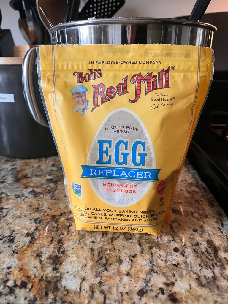 - 2 “eggs” (I use Bob’s Red Mill Egg Replacer- Photo below)
